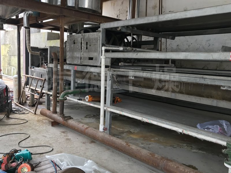 该机由液体变固体粒状,主要是通过造粒模头造粒,采用回转式钢带连续进行,通过喷淋水冷却定型。